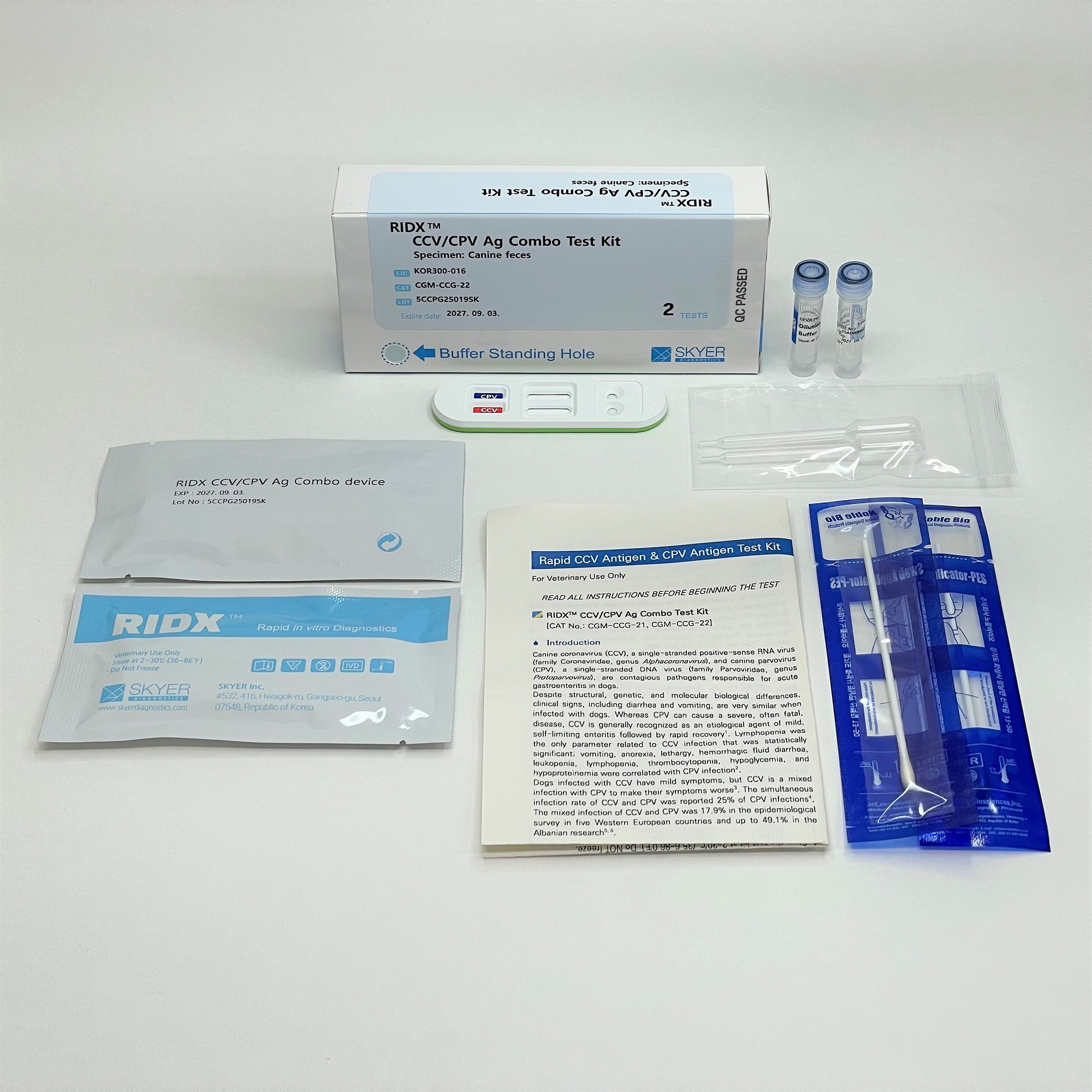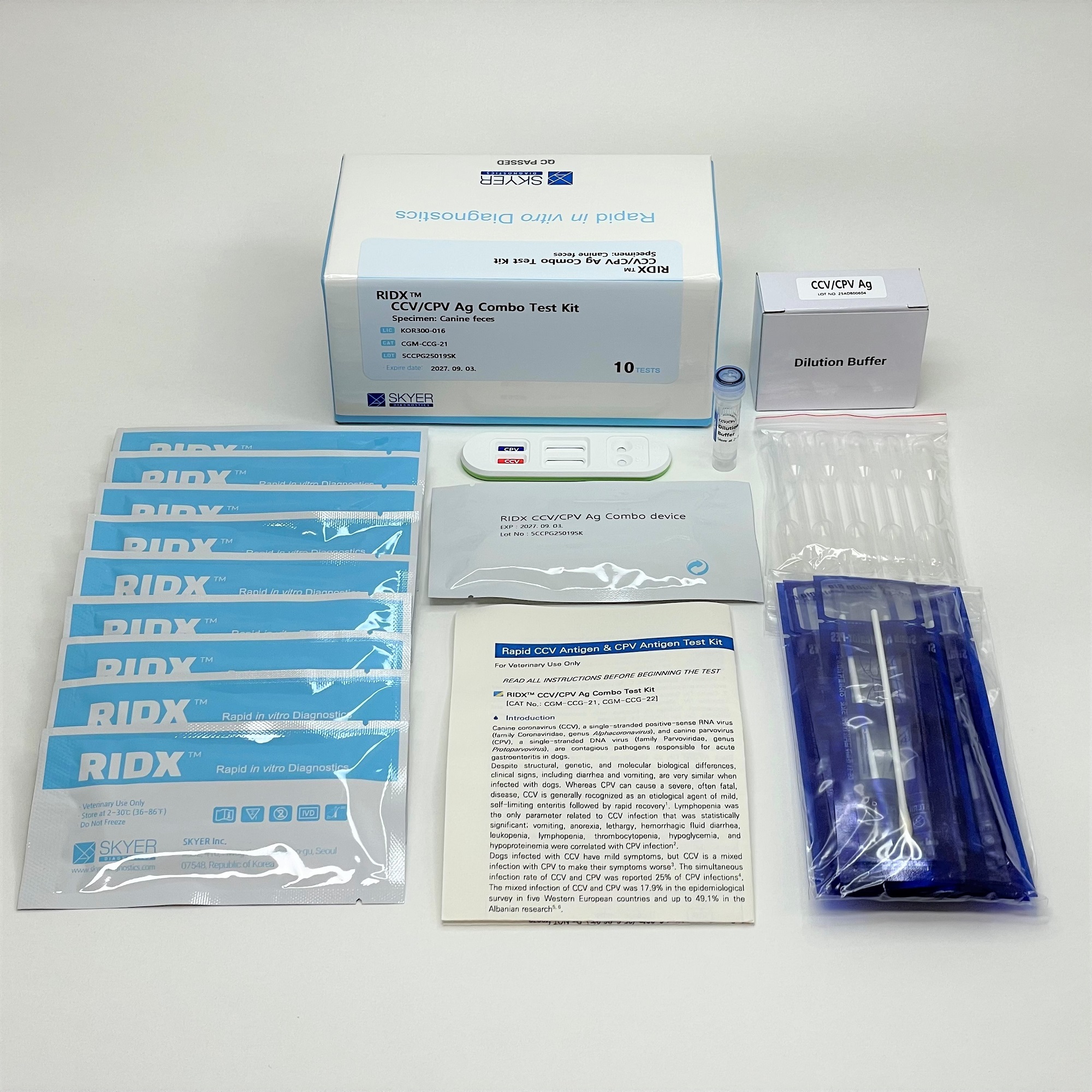 • RIDX CCV/CPV Ag Combo test device (10 or 2 tests)