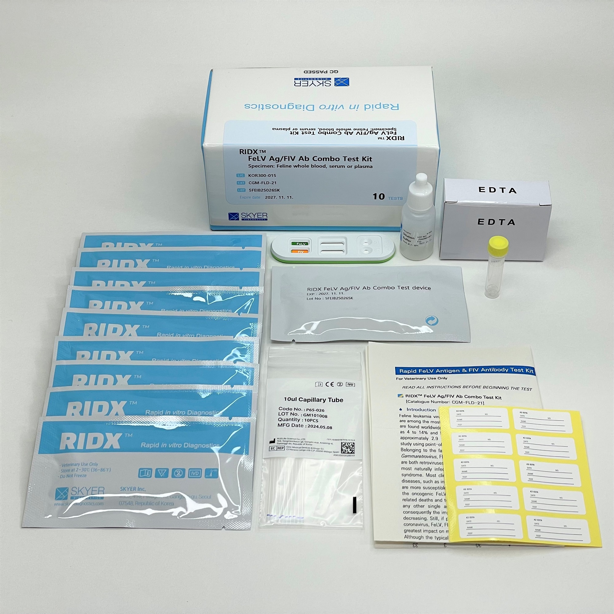 • RIDX FeLV Ag/FIV Ab Combo test device (10 tests)