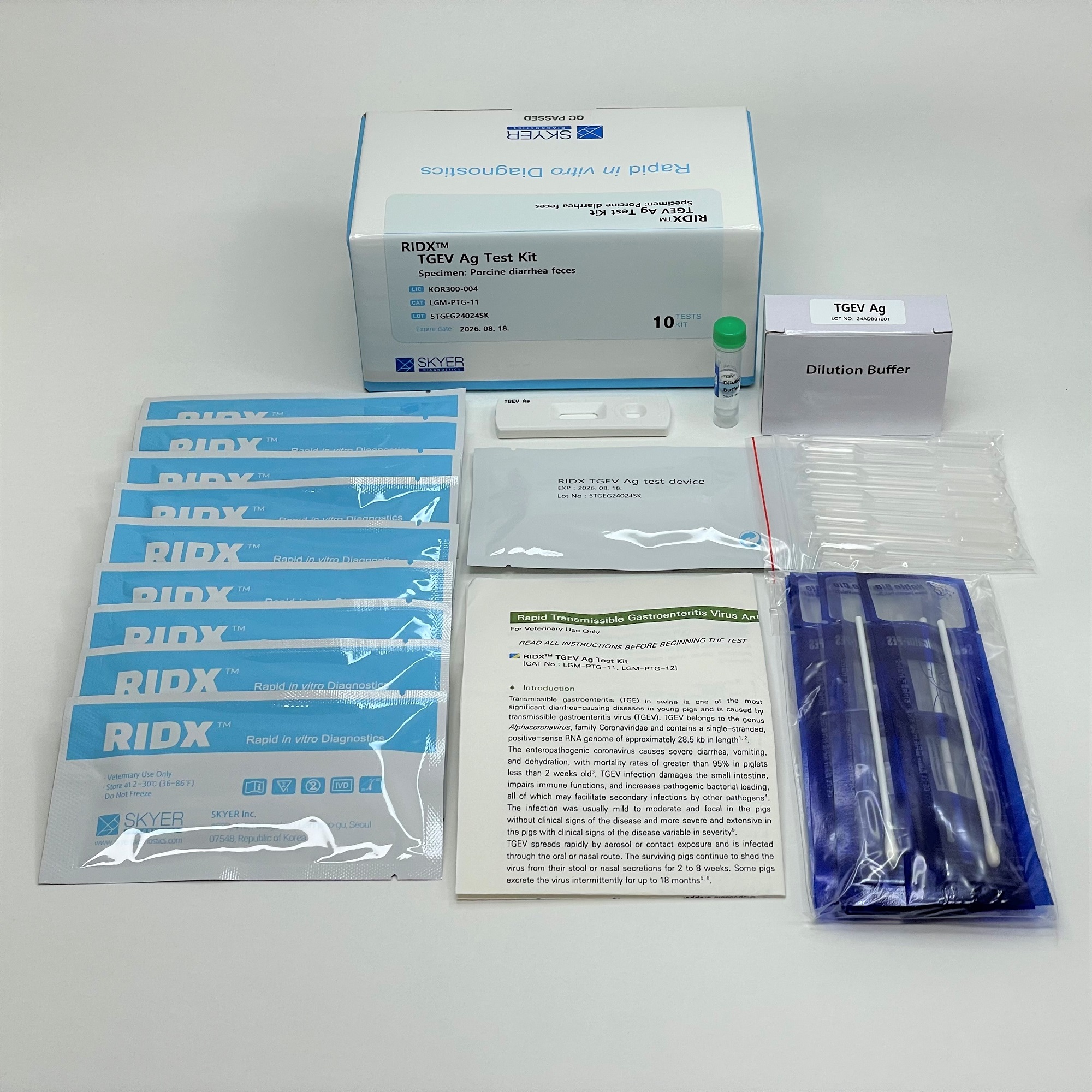 The highly selective and sensitive two monoclonal antibodies to TGEV are used as capture and detector in the kit. The RIDX® TGEV Ag Test Kit can detect TGEV antigens in porcine feces with high accuracy.